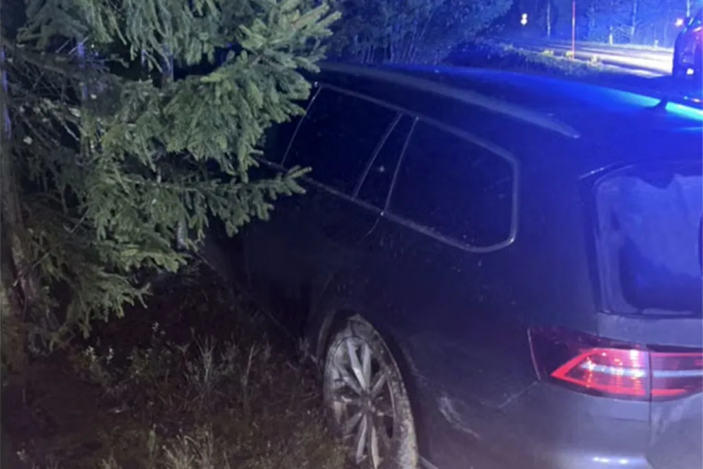 Som mest körde bilen i 220 km/h, skriver Gefle Dagblad. Jakten fick dock ett abrupt slut när den flyende bilen körde av vägen och hamnade i diket. När polisen kom fram satt en 20-åring bakom ratten. De uppfattade honom som påverkad, vilket senare skulle bekräftas i utredningen. Dessutom saknade 20-åringen körkort.