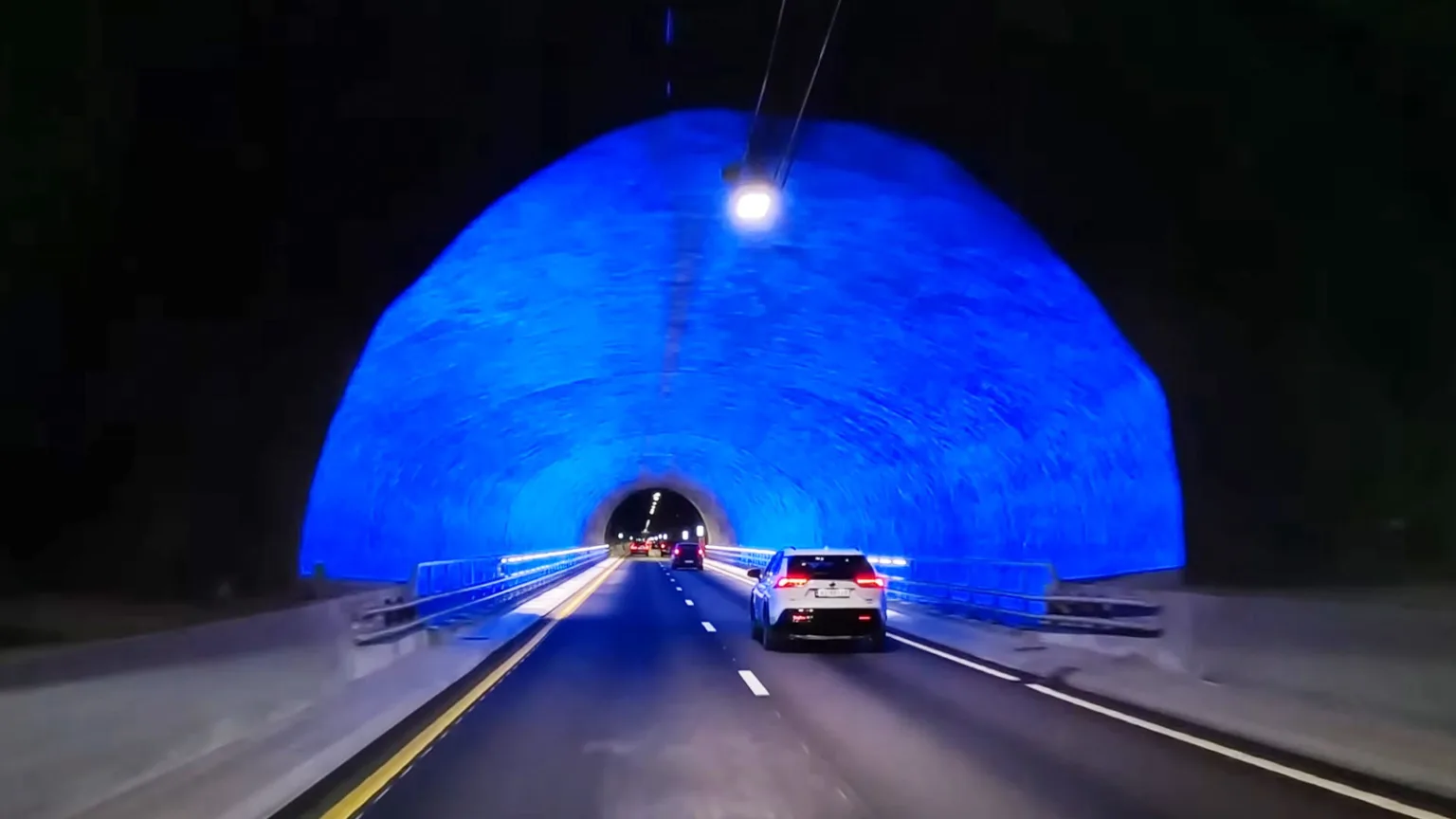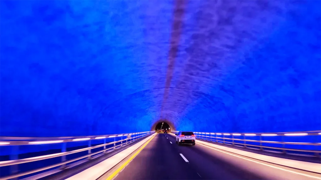 Där nere är trycket från havet enormt. För att undvika vattenläckor tätades berget noggrant i förväg genom att pumpa in betong i sprickor innan sprängningarna fortsatte. Inuti tunneln krävdes också omfattande teknik. Ventilationen måste hela tiden föra bort avgaser och tillföra frisk luft. Samtidigt installerades avancerad belysning för att hålla förare alerta under den långa, monotona körningen.