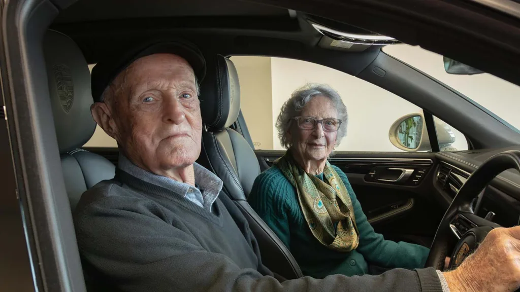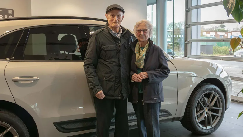 Firar 70-årig bröllopsdag med en ny Porsche. 90-plussarna bränner förbi ungtupparna.
