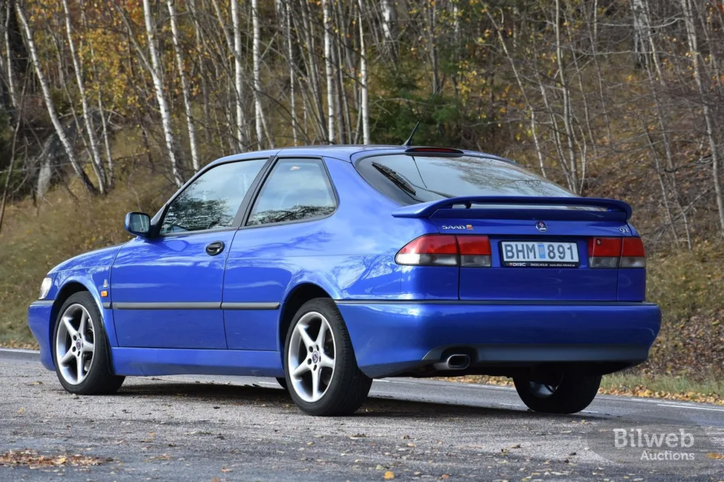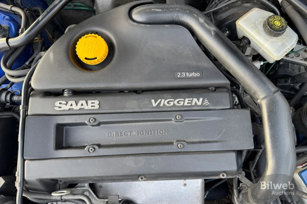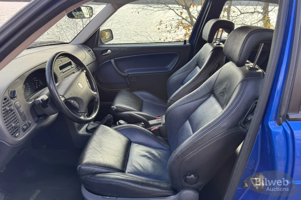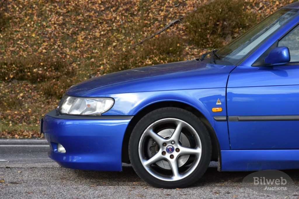 Saabs bilar blir mer värdefulla för varje dag som går. Det görs ju inga nya. Det här exemplare, som är lackat i Lightning Blue, har ett bedömt värde på mellan 180 000 och 200 000 kronor. Budgivningen börjar redan lyfta mot höga höjder.