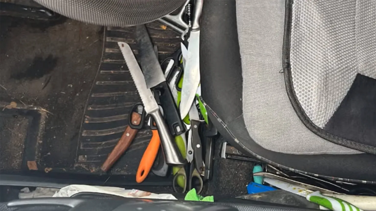Det var en dag i oktober som en polispatrull i Växjö i Småland reagerade på en bil där sikten verkade vara helt skymd av påsar och skräp. När bilen stoppades möttes poliserna dock av ett oväntat fynd, skriver SMP. Vid förarens fötter, i sidofickorna och mellan sätena låg det fullt med knivar – hela 41 stycken.