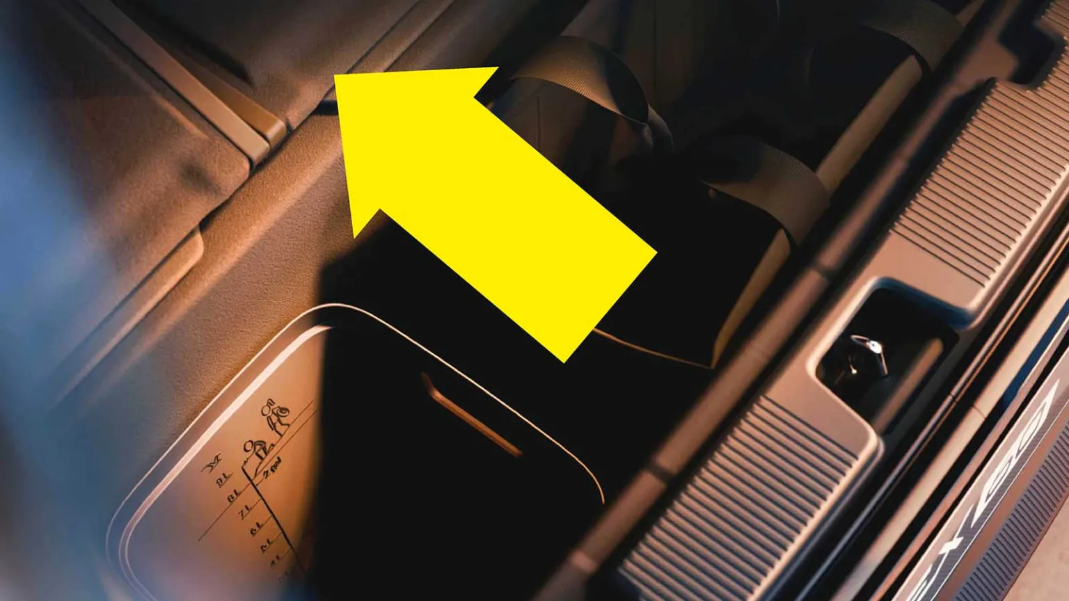 Bilen på bagageutrymmet visar att det blir en del utrymme kvar till matkassar och väskor även om sju passagerare färdas i nya Volvo EX60. Det finns även ett stort fack under golvet som Volvo stolt visar upp. Om ingen sitter i de bakre sätena kan de fällas ner för att ge ett större bagageutrymme. Den 21 januari får vi klart besked om säten, hästkrafter och allt annat som rör Volvo EX60. Då visas bilen upp på ett livesänt event.