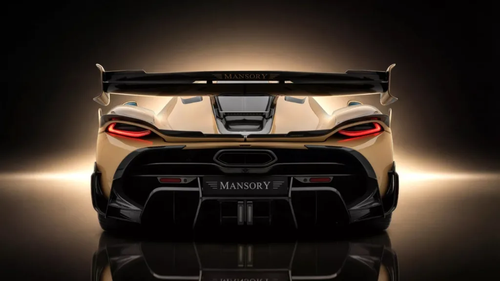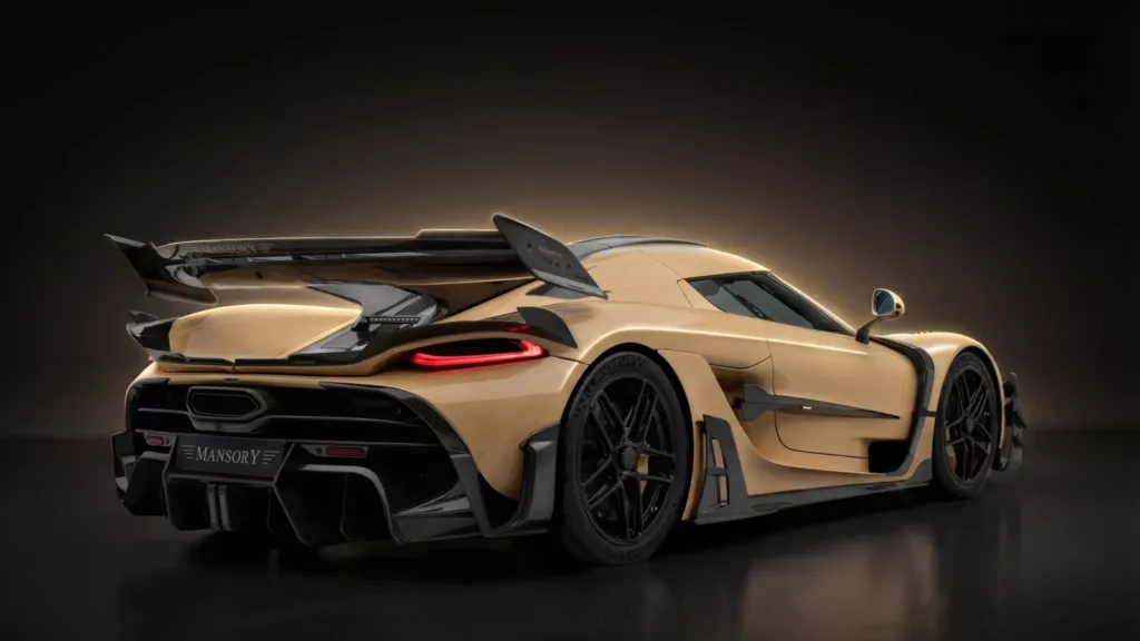 Baksidan på vanliga Jesko är redan en av de mest imponerande i hyperbilvärlden. Men Mansory har gjort den ännu mer vild. Ändplattorna på den dubbla bakvingen har fått en ny design som bidrar till bilens extrema utseende, och en list med kolfiber i flera delar sträcker sig över hela bakluckans bredd. Dessutom har bilen fått en ny diffuser och ett centralt bromsljus, med direkt inspiration från F1.