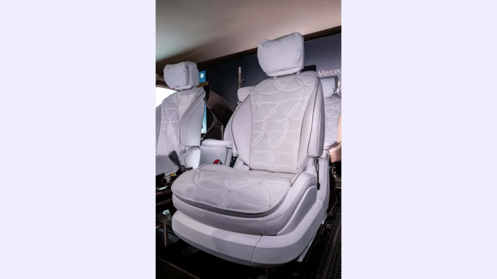 – Med hjälp av bioteknik kan plast återvunnen från gamla däck också användas för att tillverka ett högkvalitativt alternativ till läder, skriver Mercedes Benz.