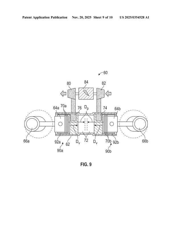 Delar av GMs nya tvåtaktsmotor enligt patentansökan. Det är i princip en genomskärning av cylindern och kolven, plus detaljer på den rörliga ventilhylsan.