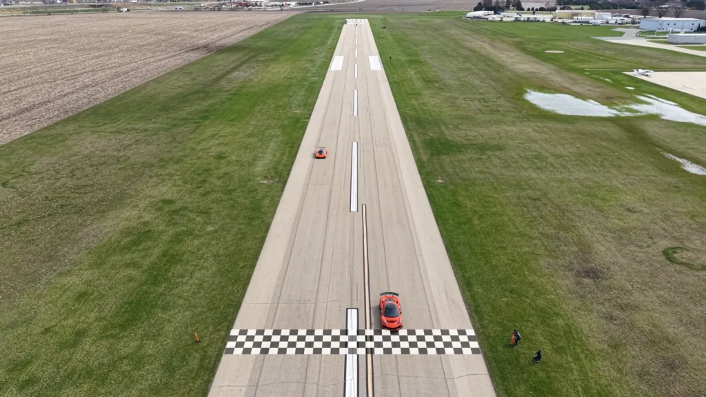 Jesko har 1 280 hästkrafter på bensin och en vikt på endast 1 420 kg. På pappret borde den ha övertaget, men verkligheten på asfalten var en annan. Jesko kämpade med kalla däck och bakhjulsdriftens begränsningar, medan Corvetten sög tag bättre i asfalten och sköt iväg.