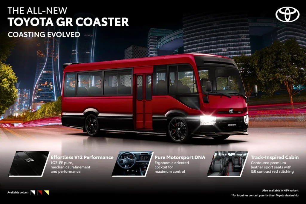 Dessutom ska bilen klassas om från elbil till hybrid. Allt presenterat som en seriös lösning. Och internationellt fortsätter det. Toyota i Filippinerna visar upp en skolbuss med V12-motor – byggd för att köra på bana. En minibuss för 29 personer som plötsligt blir sportbil.