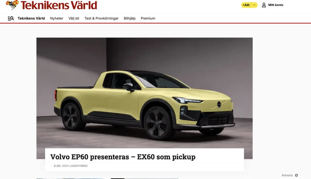 Teknikens Värld gick på en mer klassisk bluff och visade upp Volvo EP60 – en eldriven pickup baserad på EX60 med upp till 850 hästkrafter och över 80 mils räckvidd, komplett med en A-traktorversion för 15-åringar. Alla aprilskämt är dock inte lika uppenbara.