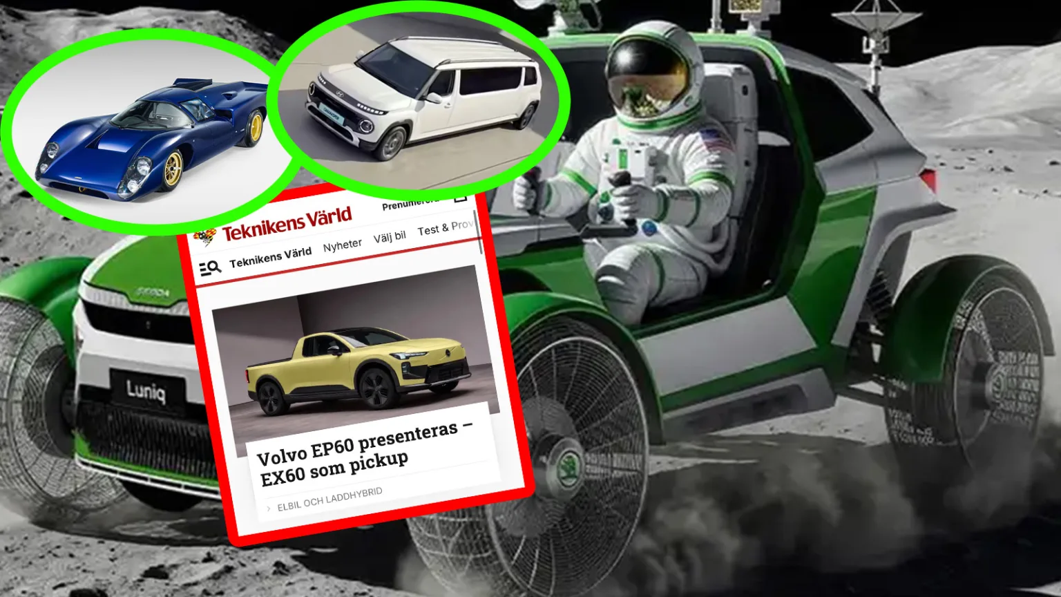 Hyundai visar upp en extrem version av sin lilla stadsbil utdragen till limousine. En elbil så lång att parkering beskrivs som ett problem i sig. Samtidigt presenterar Skoda en månbil med nollgravitation i sätena men utan det klassiska paraplyet i dörren. Leapmotor har “lanserat” ett läge där bilen ska sväva över fartgupp med hjälp av magnetfält. Funktionen fungerar, men bara i låg fart skriver Stellantis.