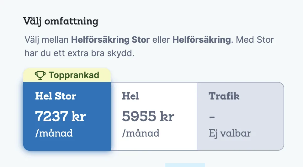 Länsförsäkringar (kr/mån)Folksam (kr/mån) Trygg-Hansa (kr/mån)If (kr/mån)Skillnad dyrast–billigast (kr/år)