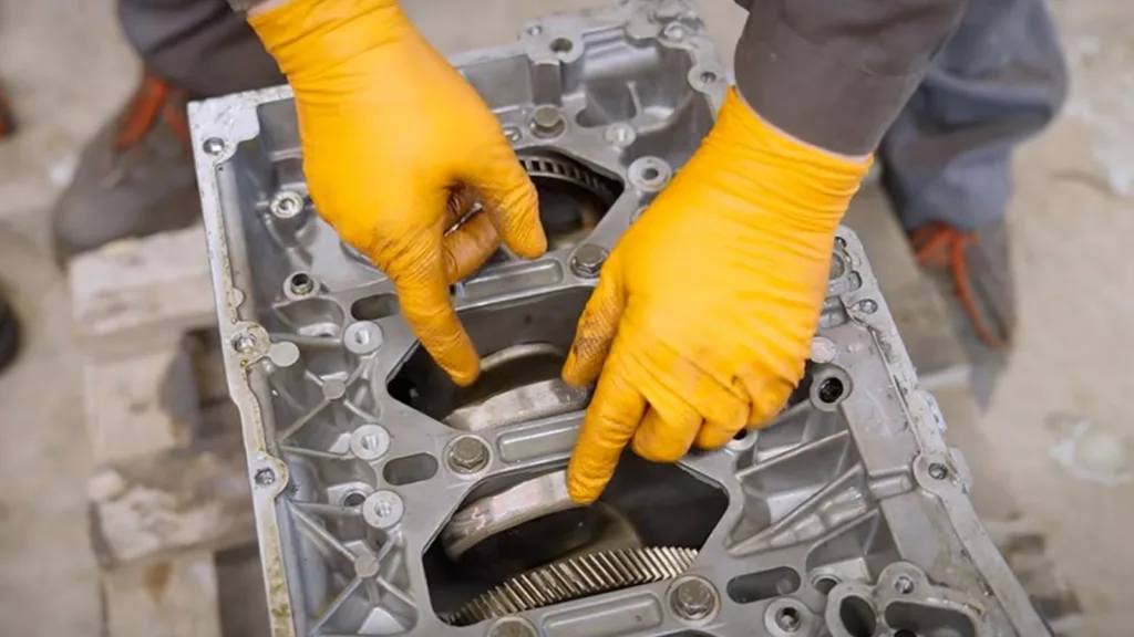 Swedetech började med att montera isär det spruckna oljetråget, och möttes snabbt av en chock. Vevaxeln hade slipats ner rejält. Man hade gjort så för att dölja ett gammalt motorhaveri och försöka få motorn att gå jämnt igen, trots att den egentligen var trasig. Normalt sett innebär en obalanserad eller nött vevaxel att delen måste skrotas. Men här hade någon lagt ner ett enormt jobb på att slipa både axeln och dess motvikter. På så sätt gick motorn tyst nog för en försäljning.