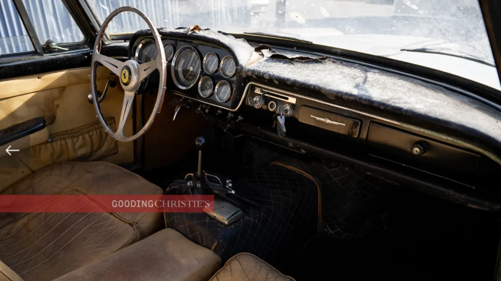 Enligt auktionsfirman har bilen stått stilla i förvaring sedan slutet av 60-talet. Nu har auktionsfirman fotat bilen. Men innan dess har Ferrarin inte sett solsken på minst 57 år. Ferrari 250 GT designades av Pininfarina. De är kända för att ha designat flera av världens vackraste bilar. Ferrari F40, Ferrari Enzo och Alfa Romeo Spider för att nämna några. Och många menar att 250 GT inte är sämre.