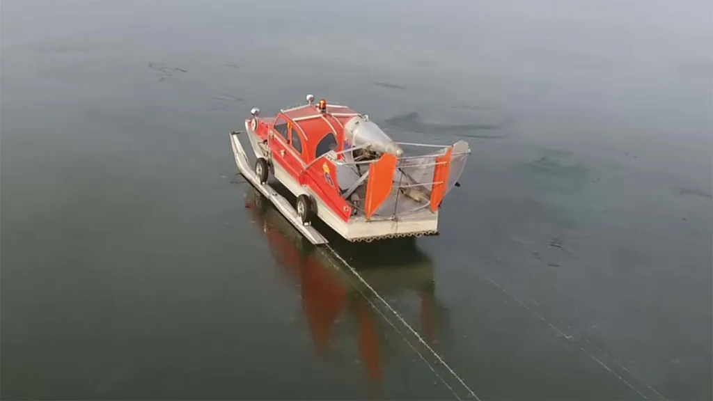 – Är man ute på fin is är det helt underbart att köra den. Amphibian susar fram över isen utan några problem.
