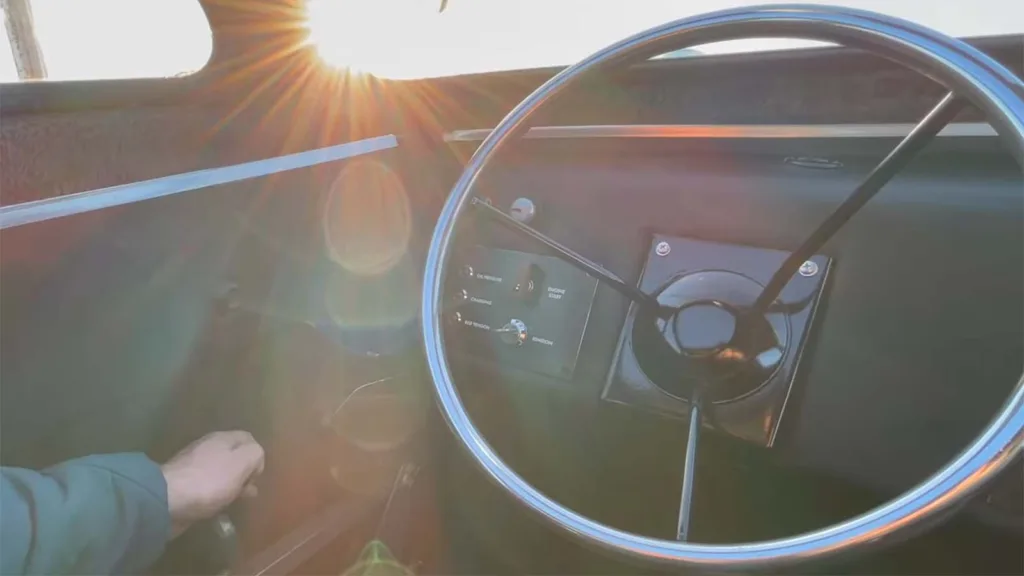 – Det är lätt att ställa om den till att köra som en vanlig bil. Medarna sitter fast med fyra bultar som är lätta att lossa. Det finns en ratt och en styrspak under den.