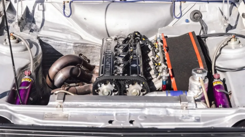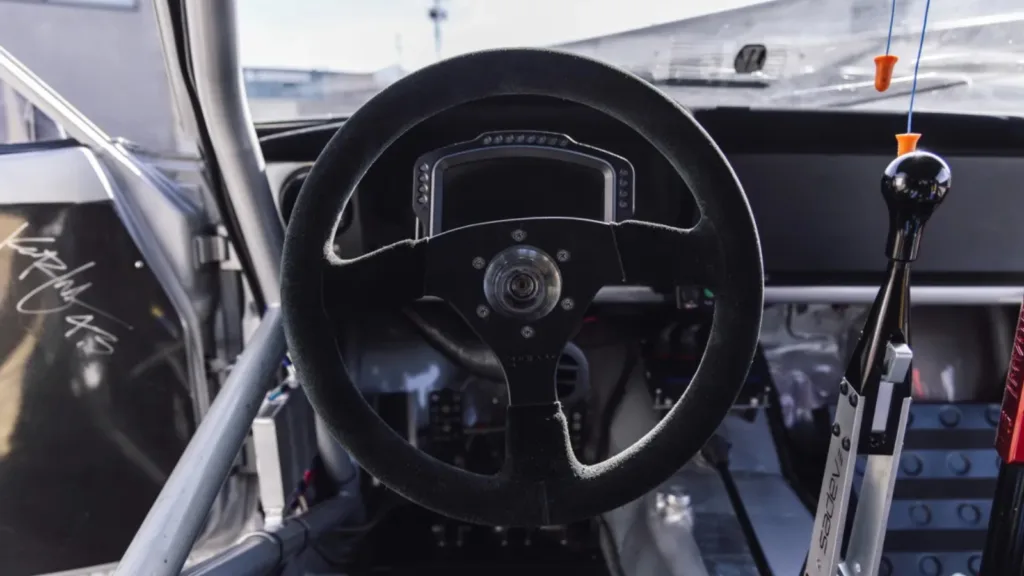 Motorn är kopplad till en sexväxlad sekventiell växellåda från Sadev med så kallad “flatshift”, vilket gör att föraren kan växla utan att släppa gasen. Perfekt när man vill drifta. Alla bilder: Bring A Trailer