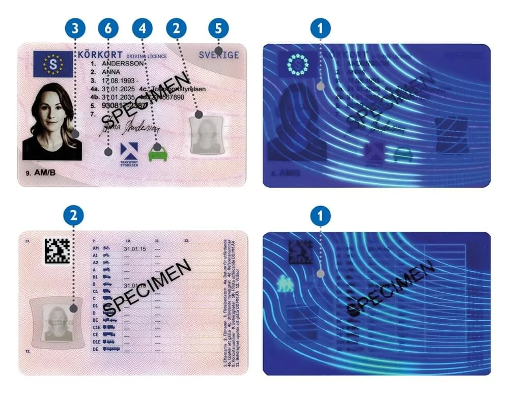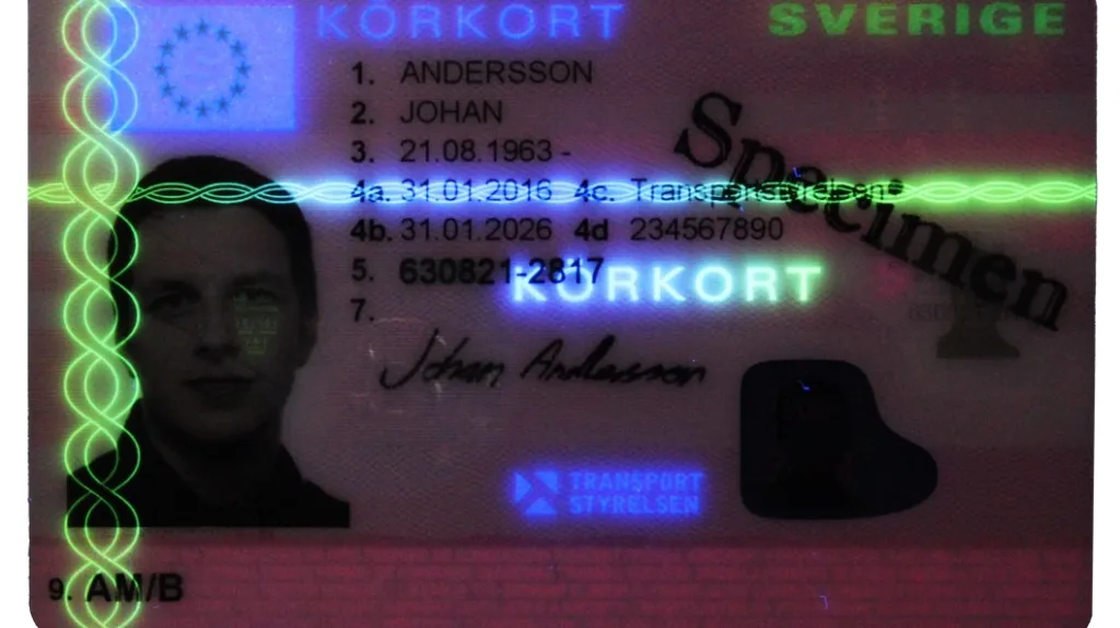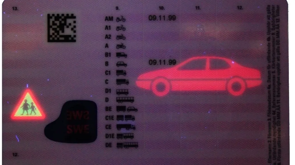På baksidan av körkortet som de flesta svenskar har finns skylten ”Varning för barn” och röd bil gömda på baksidan. De framträder om du lyser med en UV-lampa.