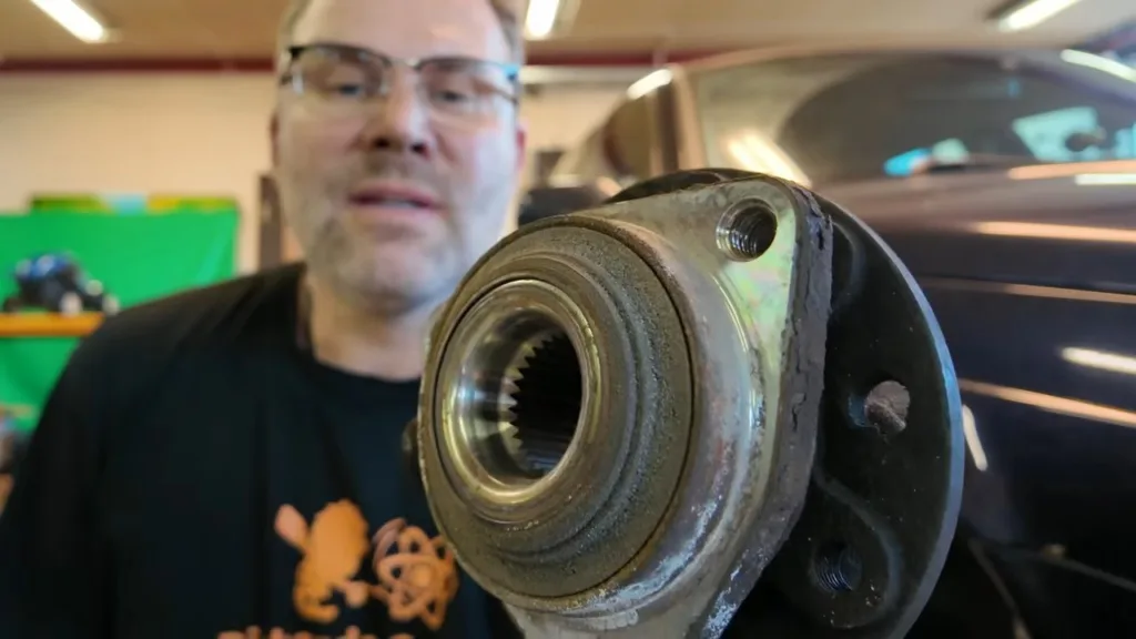 När han väl plockar bort det gamla lagret ser han att originallagret är märkt FAG, medan Biltemas del ser lite annorlunda ut på vissa punkter. Samtidigt tycker han att mycket ändå påminner om originalet. På just Saab 9-5 beskriver han dessutom jobbet som ovanligt tacksamt för den som vill skruva själv, eftersom konstruktionen gör lagret relativt lätt att byta.