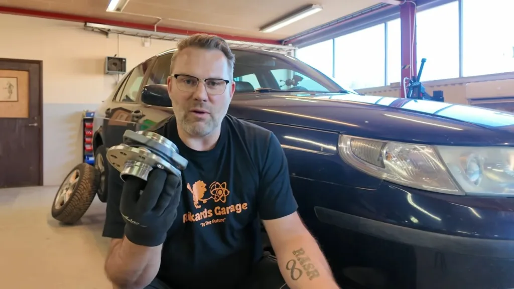 Bakgrunden är att hans Saab börjat låta illa från höger framhjul. Ljudet blir extra tydligt i vänstersvängar, och det blir signalen på att något inte står rätt till. För Rickard handlar testet därför inte bara om att laga bilen billigt. Utan också om att ta reda på om lågprisdelen från Biltema faktiskt kan vara ett rimligt alternativ för vanliga bilägare.