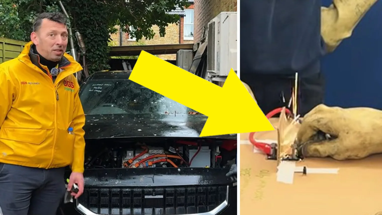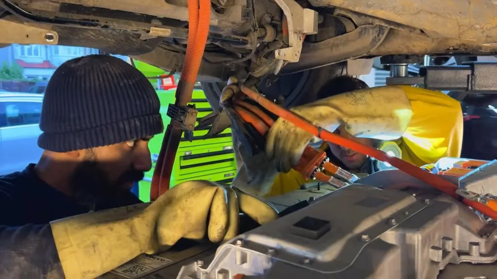 – Det är en av de farligaste elbilsreparationer vi gjort, säger elbilsmekanikern George.