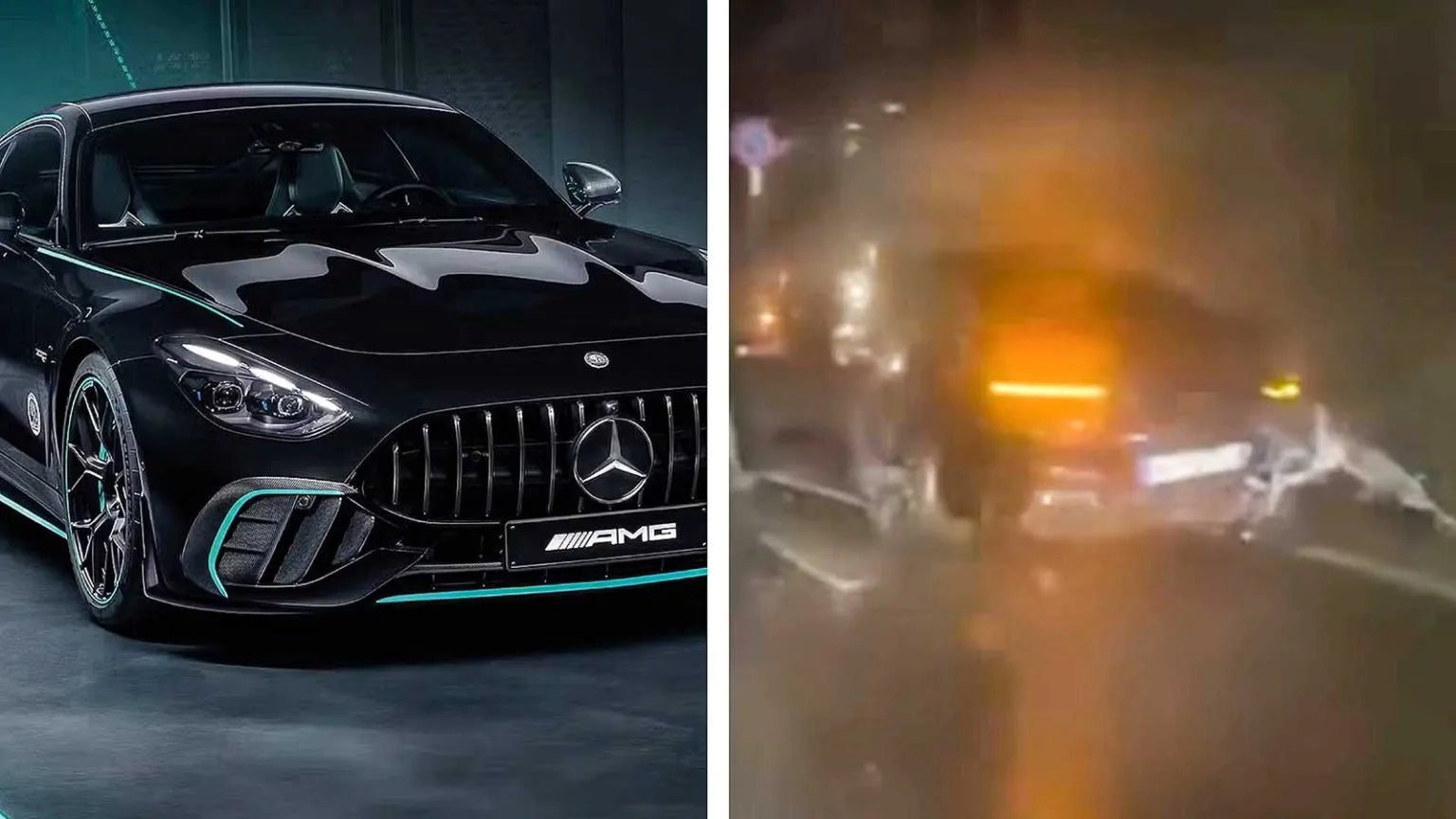 Kimi Antonelli han köra sin nya Mercedes AMG GT 63 ett par veckor. Nu ser ut att vara förvandlad till skrot, men F1-föraren ska ha klarat sig helt oskadd. Foto: Mercedes Italia