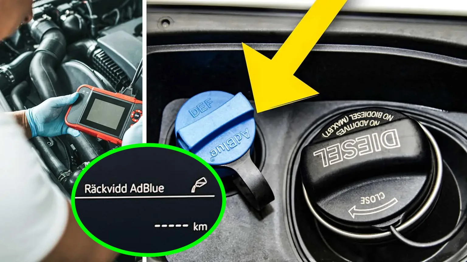 Men AdBlue kom aldrig igång. Och då började bilägaren misstänka att något var fel. I displayen syns bara två streck. Ett klassiskt tecken på att systemet för AdBlue, den vätska som renar avgaserna från kväveoxider, är urkopplat.