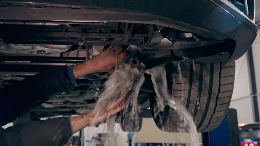 Vali ville verkligen få igång motorn. Plötsligt fick han idén att ta loss röret från intercoolern som leder vidare till insuget. Och där väntade enorma mängder vatten som rann ut. Vattnet hade alltså tagit sig in via insugssystemet, och in i motorn. Ett klassiskt scenario för vätskelås.