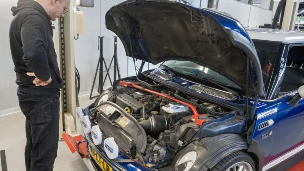 Efter att Joep gjort en noggrann inspektion hittade han flera fel. Bilen dras med kraftiga vibrationer vid både acceleration och bromsning, samtidigt som motorn läcker olja. Dessutom fungerar sänkfjädrarna dåligt ihop med Koni FSD-dämparna, vilket gör väghållningen direkt farlig. Och vänster framdörr är så sliten att den knappt går att stänga.
