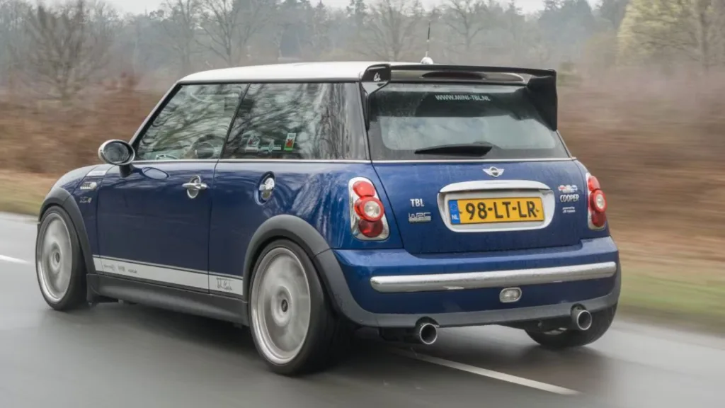 Wims Mini är sänkt och utrustad med större och bredare hjul än originalet. Han har även monterat Koni FSD-stötdämpare tillsammans med sänkningsfjädrar från H&R. Överallt syns även “The Blue Lobster” (TBL), som är Wims smeknamn på olika Mini-forum. Förutom ändringar i chassit är motorn också trimmad, även om det inte finns så mycket att göra med den. 1,6-litersmotorn i Cooper är samma som i One, men den ger lite mer effekt och något högre vridmoment, båda vid högre varvtal.