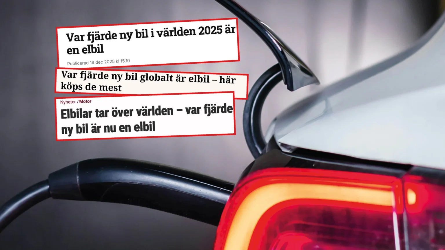Flera svenska medier går ut med att var fjärde såld bil i världen är en elbil. Problemet är att nyheten inte är sann. En enkel källkontroll avslöjar att det är betydligt färre.