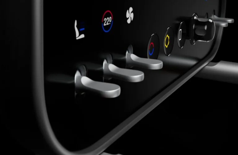 Ferrari beskriver inredningen i Luce som ett paradigmskifte för märket. Konceptet bygger på en vidareutveckling av deras ”Human-Machine Interface” (HMI), men där man tidigare fokuserat på analoga mätare och fysiska spakar, handlar Luce om total digital integration. Men för all del, Ferrari behåller en hel del skärmar.