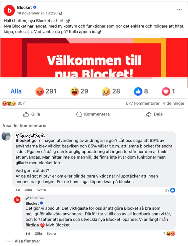 Blocket har tidigare svarat på kritiken via kommunikationsansvariga Kitty Ehn. Hon betonar att justeringar kommer – men att vägen framåt är den nya versionen. De kommer inte gå tillbaka.