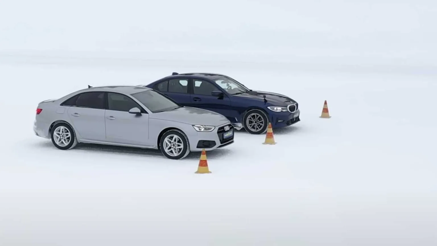 Youtubekanalen Tyre Reviews ställde två väldigt likvärda bilar med fram- respektive bakhjulsdrift mot varandra på snö. De tog en Audi A4 och BMW 3-serie, både utrustade med det dubbfria däcket Goodyear UltraGrip Performance 3 i exakt samma dimension. Båda bilarna har dieselmotor med identisk prestanda, 190 hästkrafter och 400 Newtonmeter.