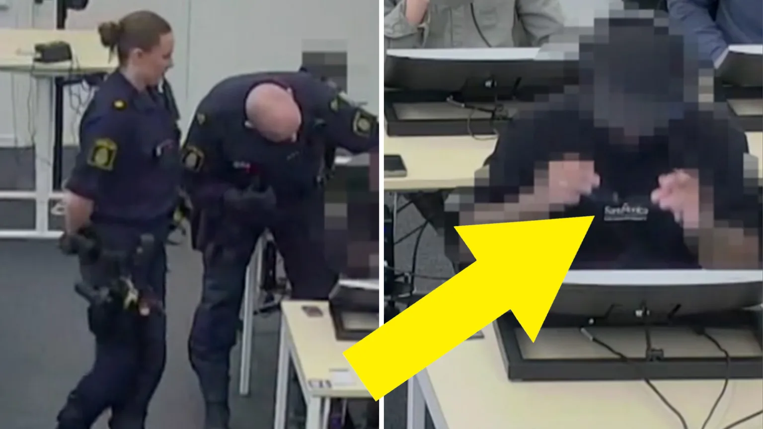 Händelsen utspelar sig hos Trafikverket i Södertälje. Klippet från polisens förundersökningsprotokoll visar hur en provkontrollant reagerar på att en man gång på gång pillar på sina glasögon under teoriprovet för körkort. Rörelserna är små och nästan omärkliga men tillräckligt många för att väcka misstankar. Minuten senare larmas polis. Kort därefter leds mannen ut ur provsalen inför övriga deltagare.