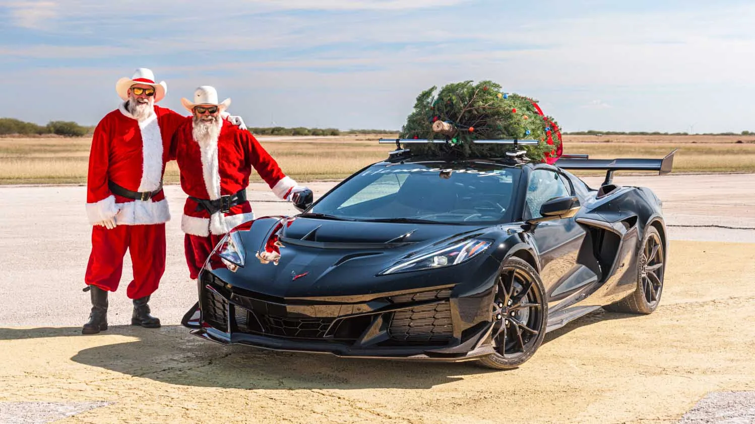 Världens snabbaste körning av en julgran. Corvette ZR1 med 1064 hästkrafter slår julrekord.