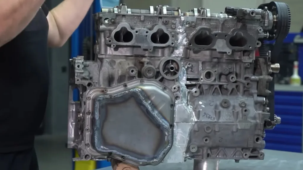 – Cylinderhuvudena gjordes på samma sätt. Två standardhuvuden svetsades ihop, fortsätter Sergej.