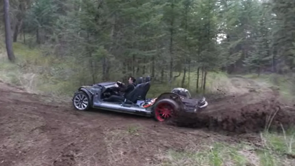 Genom att den tidigare ägaren lyckats koppla ur Teslas säkerhetssystem, som normalt förhindrar sladd och hjulspinn, kunde Evans pressa gocarten till det yttersta. Trots bilens brutala yttre visade batteriet en räckvidd på 34 mil.