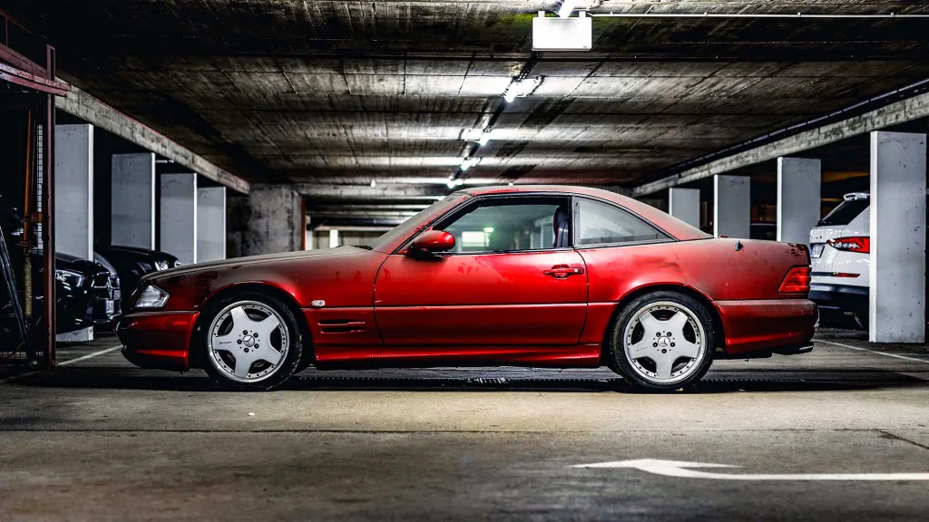 En Mercedes SL 73 AMG från 1999 glömdes bort i sjutton år och samlade damm i ett P-garage. Bara 85 exemplar gjordes av denna modell. Nu har bilen räddats till eftervärlden.