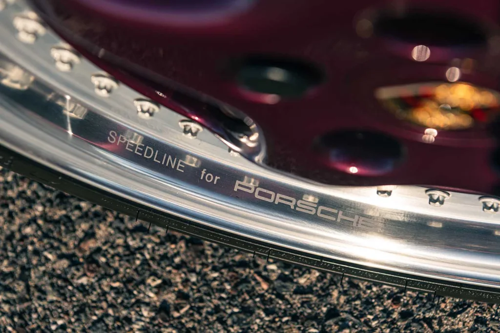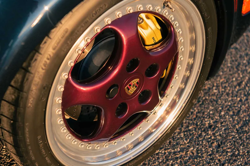 Bilen beställdes av en man som var en av Porsche bästa kunder i juli 1992. Porschen beställdes i Midnight Blue Metallic och fick en rad unika detaljer. Centrumkåporna på de tredelade Speedline-fälgarna är lackerade i den lila nyansen Amethyst Metallic. Guldlaserade bromsok skymtar bakom fälgsidorna. Och interiören kläddes i ett djuprött Bordeaux-läder.