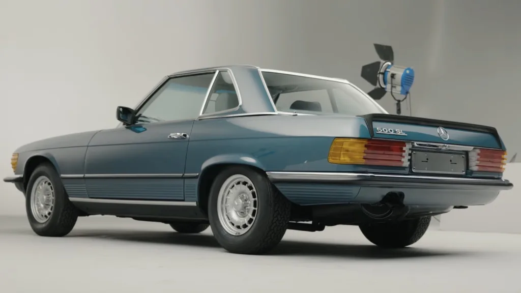 För drygt 15 år sedan besökte en herre vid namn Mr. Hough en av Storbritanniens största bilutställningar. NEC Classic Motor Show. På plats fanns även SLSHOP, ett företag som nyligen blivit erkända som ett av landets största specialister på Mercedes-Benz R107-modeller. Mr Hough började prata med teamet, och berättade att han ägde en 500 SL med under sju mil på mätaren. Han hade nämligen gömt bilen i en tidskapsel sedan den var ny. I ett privat, perfekt klimatkontrollerat garage hade den stått under täcke sedan leveransdagen.
