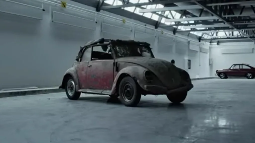 Videon visar när bilen hämtas från en hylla i ett stort lager. Beetlen har fortfarande sin originalmotor, men är täckt av damm och smuts. Karossen har omfattande rost. Även cabriolettaket är förstört och interiören kräver omfattande restaurering. Men tots sitt skick är bilen ett värdefullt exempel på Volkswagens historia, vilket gör den särskilt eftertraktad bland samlare. Efter restaurering väntas bilen bli värd en stor summa.