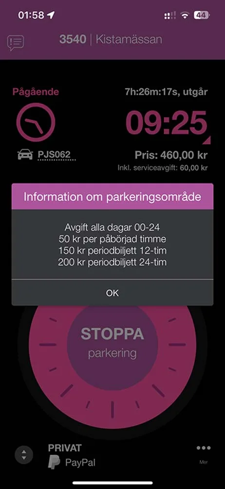 Vi talade därefter också med Easypark om hur det hade kunnat gå så fel. Men de menade att David hade avslutat sin parkering vid hotellet när han ställde bilen inne i stan.