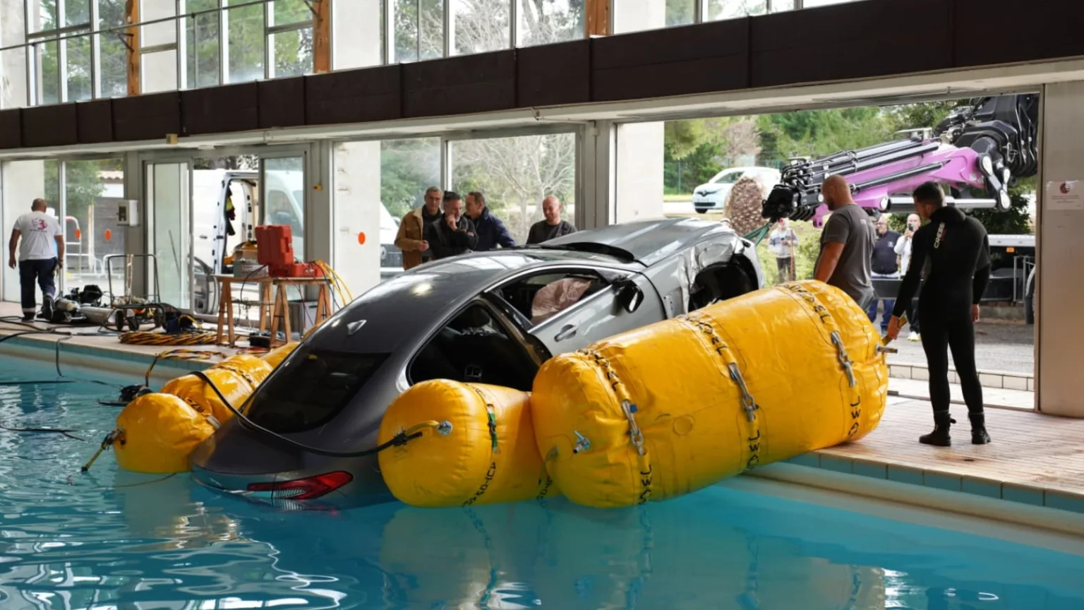 – Demontering av glasrutan, insats av dykare för att fästa flottörer på bilen och slutligen en kranoperation, skriver Staden La Ciotat på Facebook.