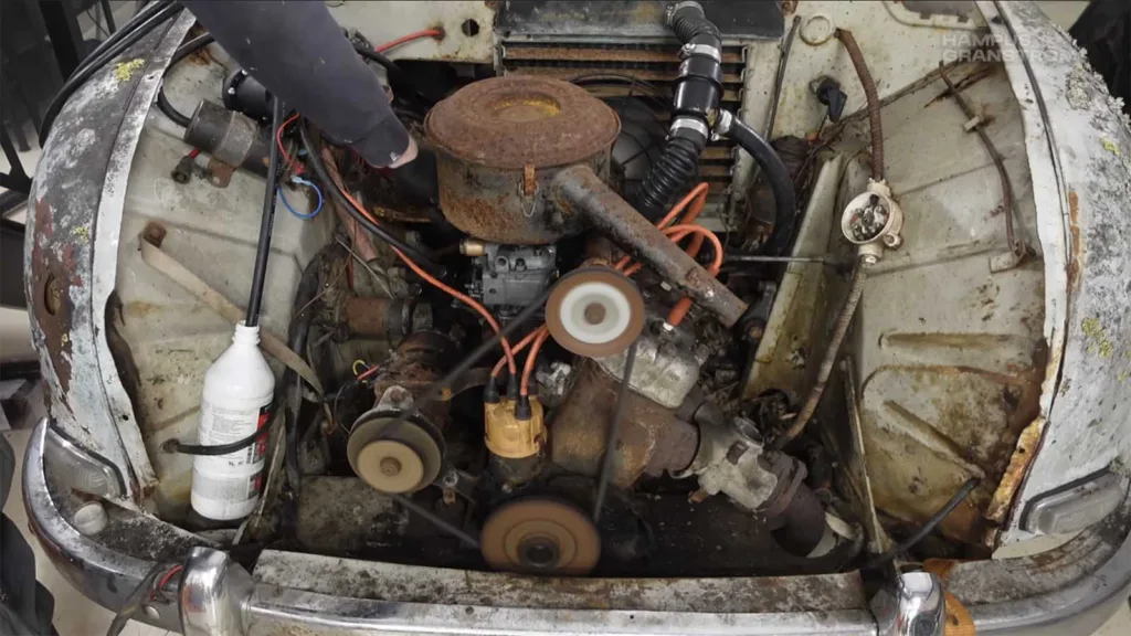 Så börjar arbetet under hela sommaren och hösten. Del för del går han igenom. Rostiga gamla aluminiumdetaljer våtblästrar han och kopplingen måste repareras. Det är mycket som måste göras. När det börjar närma sig juletid sätter sig Hampus bakom ratten. Han vrider på nyckeln och tvåtaktsmotorn väcks till liv efter en evighet i skogen i Jokkmokk. För första gången på 55 år. Men det är långt ifrån perfekt. Han förstår att förgasaren behöver rengöras.