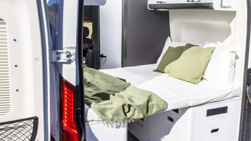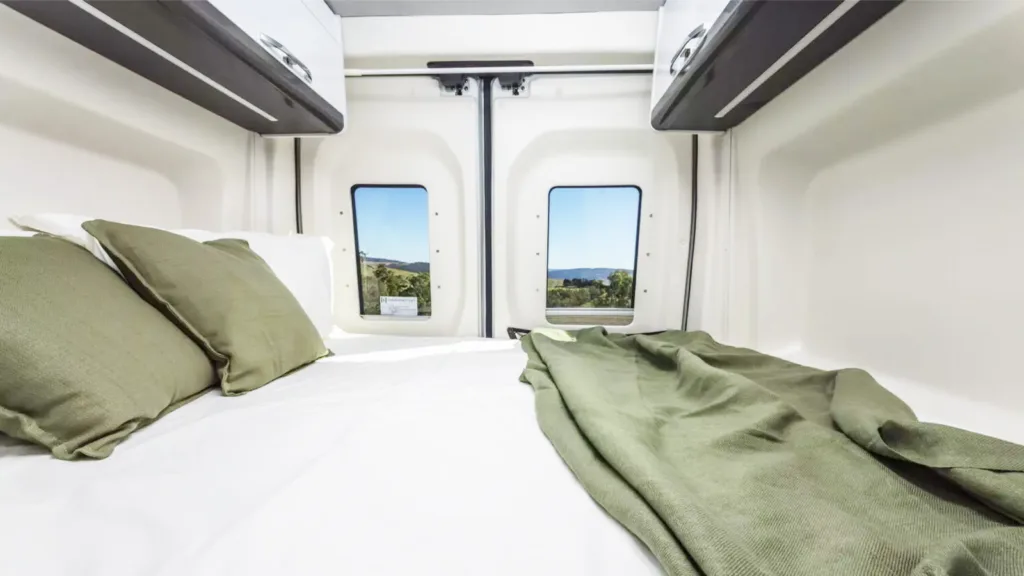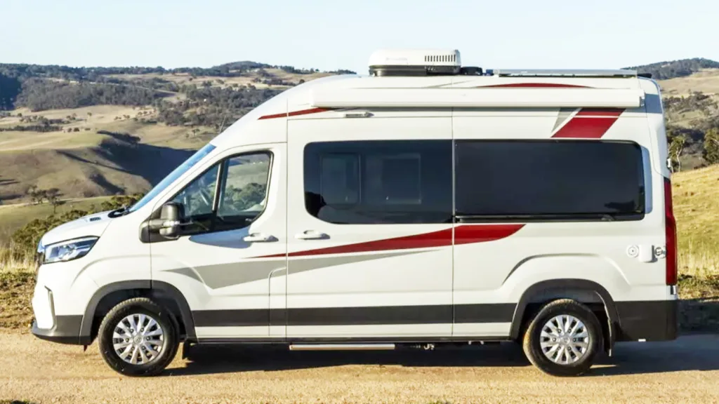 Deras nya husbil kommer färdigbyggd direkt från fabrik, till ett pris som utmanar allt i segmentet. Exteriören är enkel men sticker ändå ut med sina röda detaljer, markisen och den stora AC-enheten på taket. Men den riktiga överraskningen kommer när sidodörren öppnas. Med eldriven insteg och myggskydd kliver man rakt in i ett utrymme som mer liknar ett kompakt fritidshus än ett transportfordon.