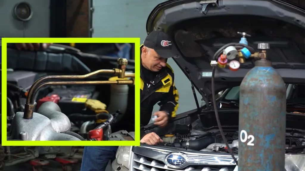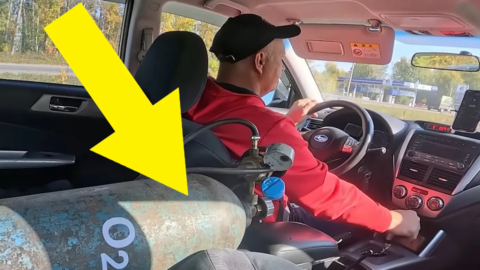 De är kända för att utmana fysikens lagar och den här gången går de ännu längre. Det ryska gänget bakom YouTube-kanalen Garage 54 ville ta reda på vad som händer om en bilmotor får andas ren syrgas i stället för vanlig luft. Därför riggade de en Subaru med en slang rakt in i insuget. I andra änden satt en stor stålflaska fylld med syrgas.