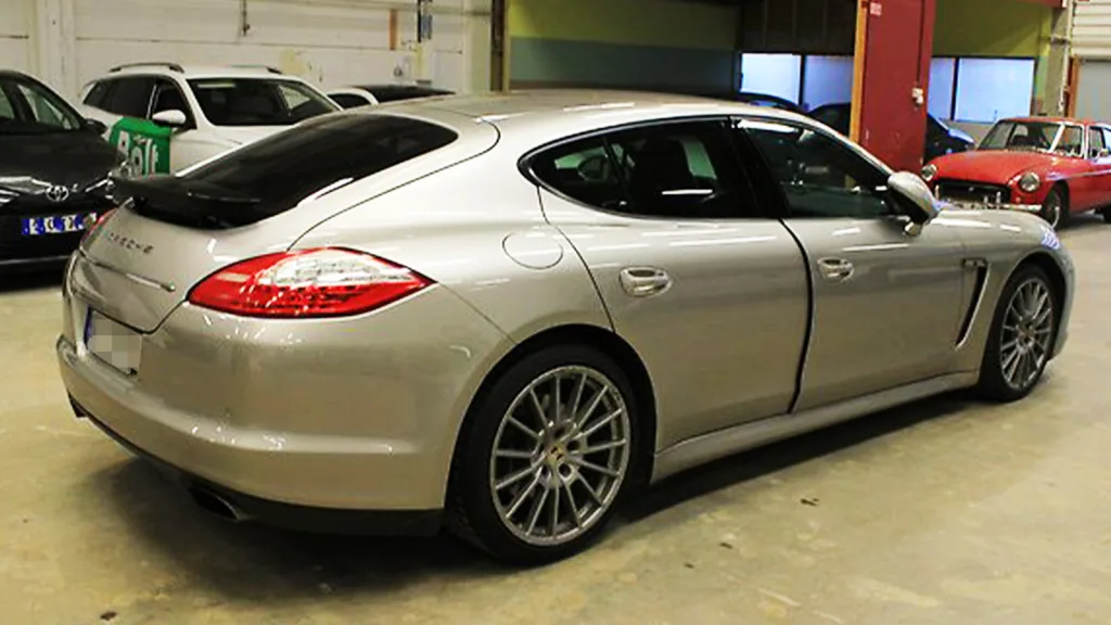 Det handlar om en Porsche Panamera 4 från 2011. En bensindriven fyrsitsig sportbil med automatlåda och 299 hästkrafter. Den har rullat drygt 21 000 mil och är besiktigad till våren 2027. Invändigt är den utrustad med svart skinnklädsel och bilen levereras med både servicebok och instruktionsbok. Men skicket är långt ifrån perfekt.