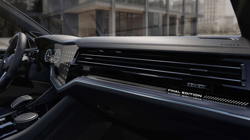 2026 blir sista produktionsåret, och då lanserar VW en Touareg med extra allt – kallad Final Edition. Modellen får exklusiva designinslag både invändigt och utvändigt. Texten “Final Edition” finns lasergraverad på bakdörrarnas fönsterkarmar för att markera modellens sista upplaga. Texten syns även på de exklusiva dörrtrösklarna, den belysta instrumentbrädan på passagerarsidan och i lädret på växelspaken. VW Touareg Final Edition kan beställas fram till slutet av mars 2026.