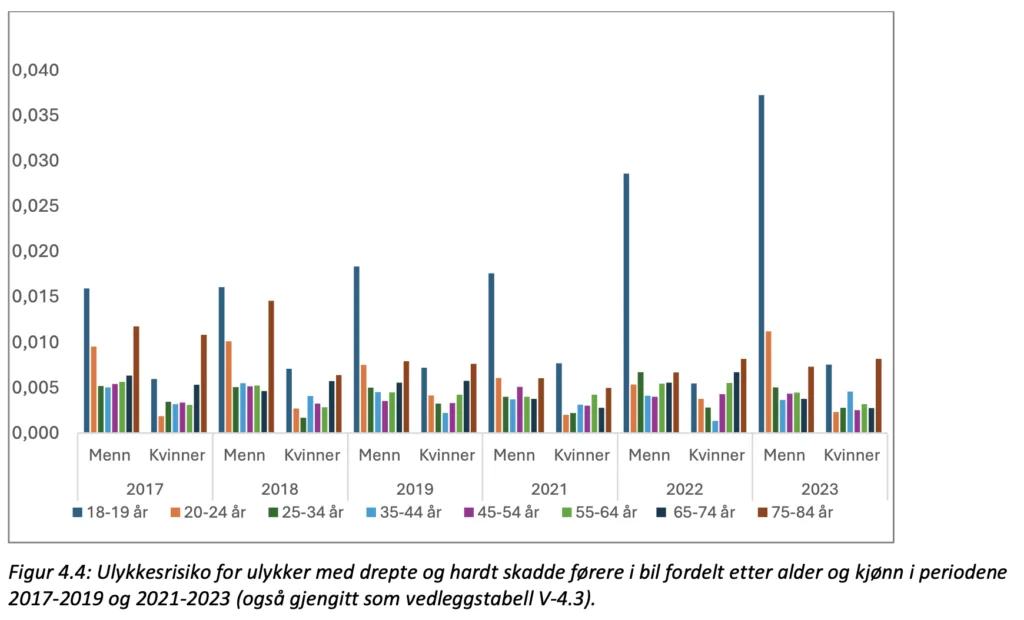 Norska forskningen visar att unga män orsakar tio gånger så många dödsolyckor som unga kvinnor. Nästan alla dödsolyckor med inblandade som är mellan 16 och 24 år orsakas av män. De har granskat alla norska dödsolyckor under perioden 2013 till 2023 och registrerade polisrapporterade personskadeolyckor från 1983 till 2023.