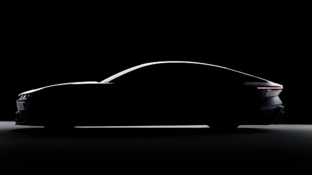 Företaget avslöjar bara silhuetten i en teaserbild. Men det räcker för att se att den nya bilen följer ikoniska Jensen Interceptor‑spåren. Bild: Jensen International Automotive