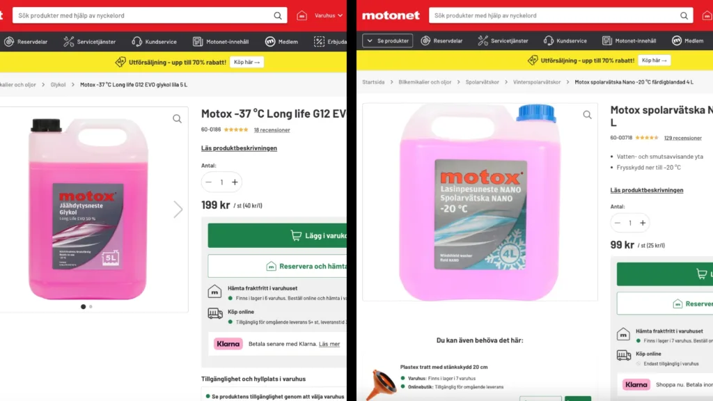 Den finska tidningen Moottori rapporterar om den den heta Biltema-utmanaren Motonet. Där finns ett brett utbud med olika dunkar spolarvätska, och flera av dessa kommer i rosa. Det är precis samma färg som kylarvätskan som säljs av varuhuset. Det kan tolkas som en tydlig väckarklocka. Man måste vara mycket noggrann när man hanterar sina bilvätskor.